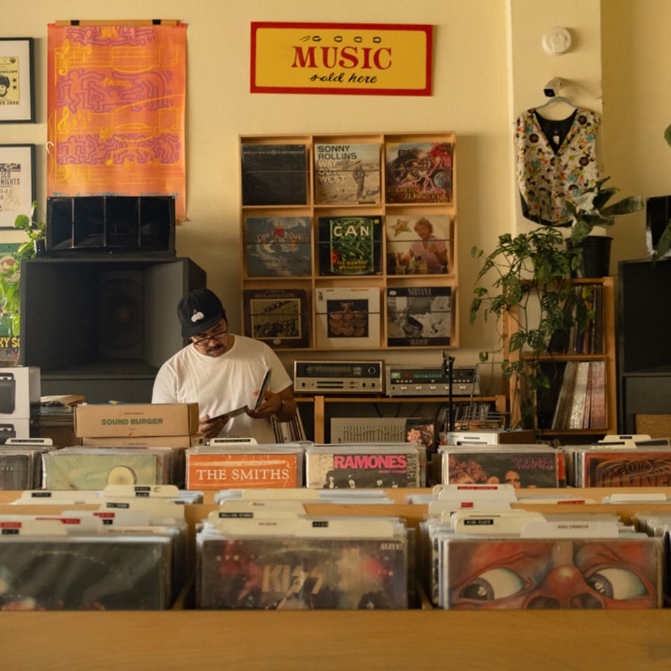 黄色のペンキでラフに塗られた入り口には、レコードショップらしくDJイベントや新譜のチラシが何枚も貼られている。僕はワクワクしながら店の扉を開けた。しばらく、興奮気味に棚のレコードを一枚ずつめくっていると、学生時代から好きなバンドのシングル盤のレコードを発見。しかも当時流行していた12インチシングルバージョンだった。