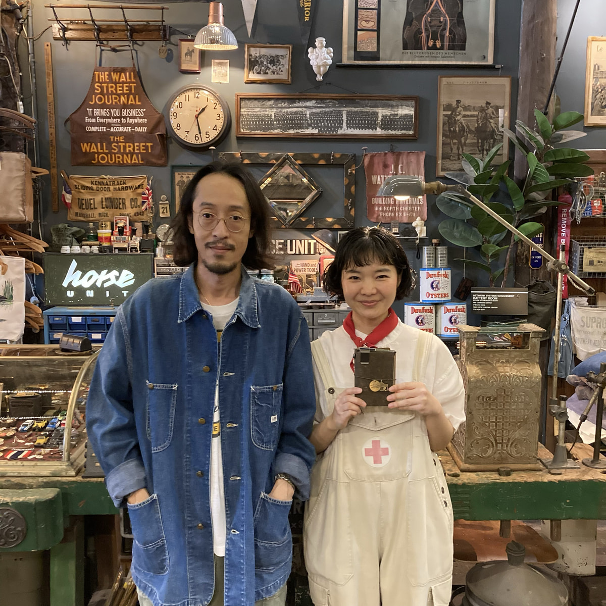 倉庫の一角をリノベーションした店内は、広々としてそこにたくさんのヴィンテージグッズが並んでいる。僕らは目を輝かせながら、所狭しと並んでいる椅子や看板、アクセサリーに古着などを眺めた。僕はレジカウンターにいる店主らしき男性に、「あの、トラベラーズノートはありますか? 私たちはトラベラーズノートを作っているんですけど」と声をかけた。すると、彼は「ああ、トラベラーズノートは上にありますよ」と言った。彼が指を指す方を見ると、天井が高い壁面にロフトがある。早速、僕らは階段を昇って2階に行った。