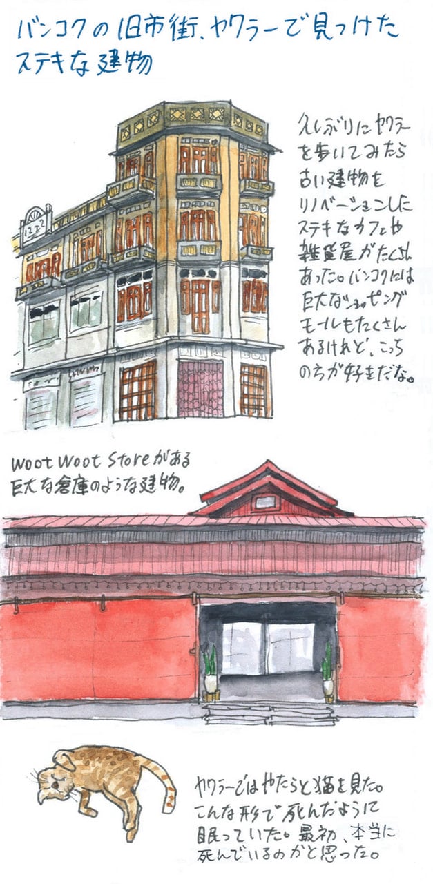 Woot Woot Store もそうだけど、ヤワラーには古い建物をリノベーションした素敵なカフェや雑貨屋がたくさんあった。この辺りは、小さな町工場に資材問屋などが多くあり、東京で言うと蔵前とか浅草橋、北千住のようなエリアだ。その下町の趣を活かした新しい店が増えているのは、おもしろい発見だった。バンコクには巨大なショッピングモールも増えているけれど、どこもそれほど変わらないモールよりも、こっちの方が僕は好きだな。